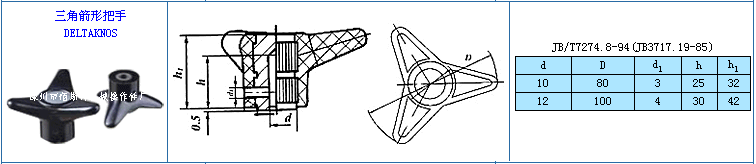 名稱:三角箭形把手 材料:酚醛模塑料(膠木、電木) 外觀:光亮,外形美觀,自然 標準:JB/T7274.8-94