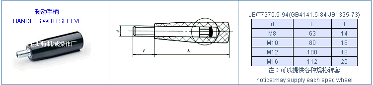名稱:錐柱手柄 材料:鋼 外觀:鋼表面噴砂鍍鉻或鍍鉻拋光 標準:JB/T7270.7