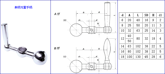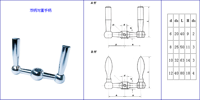 名稱:雙柄對重手柄 材料:鋼 外觀:鋼表面噴砂鍍鉻或鍍鉻拋光 標準:JB/T7270.10